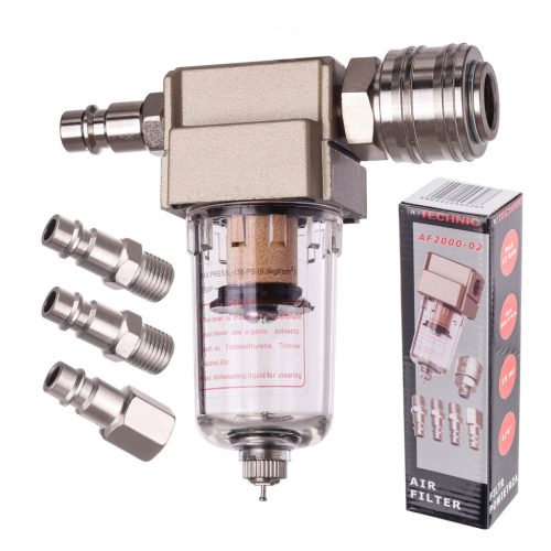 Filtrul de aer și separatorul de apă 1/4" este esențial pentru sistemele pneumatice și compresoare, protejând uneltele și asigurând un aer curat. Acesta elimină eficient apa, impuritățile și uleiul, prevenind rugina și petele în aplicațiile de vopsire.