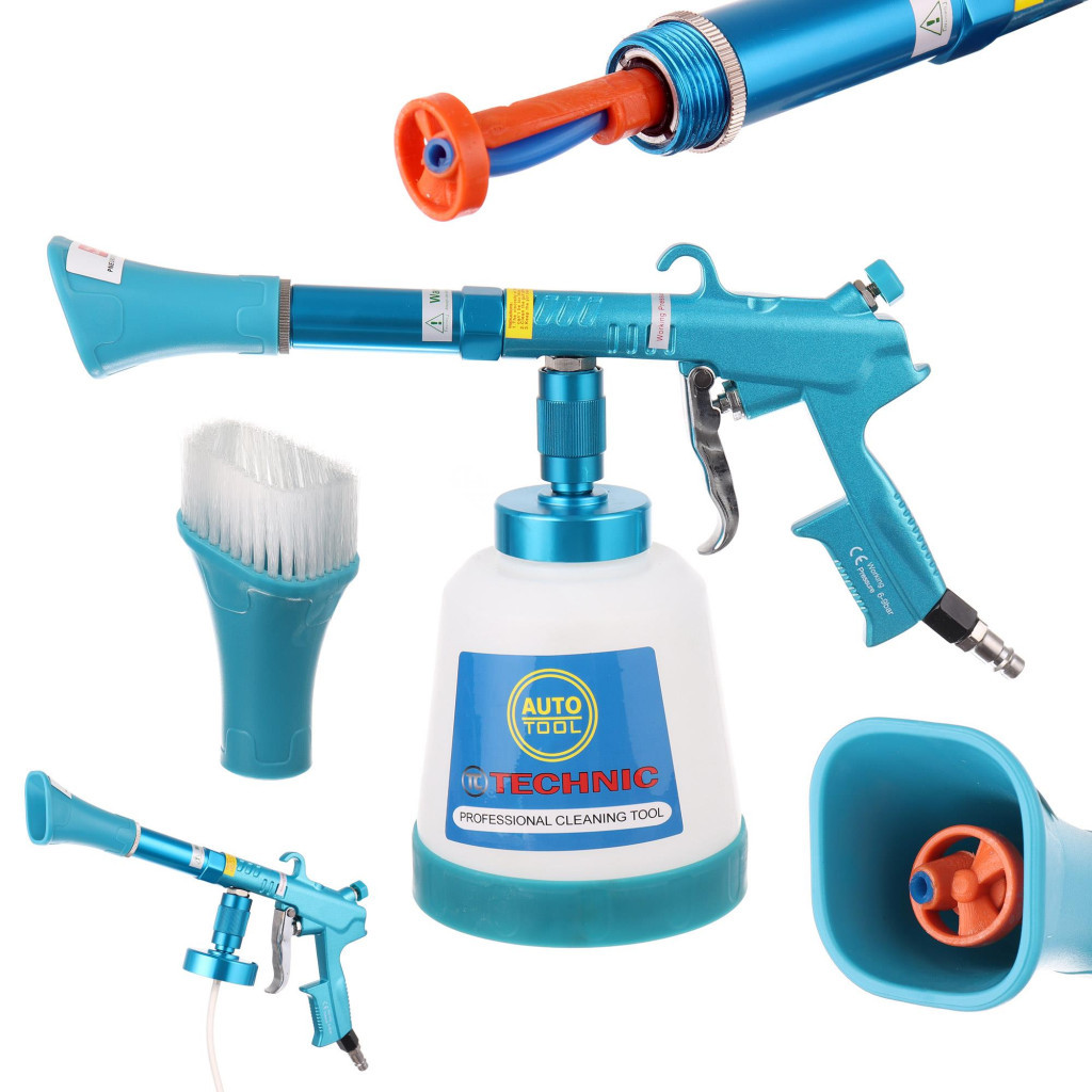 Pistolul pneumatic TC Technic LT-P2N este un instrument conceput pentru curățarea profesională a tapițeriei și a altor suprafețe sensibile. Acesta utilizează aer comprimat pentru a aplica soluții de curățare și a îndepărta murdăria încăpățânată, fiind eficient pentru detailing auto, covoare și sisteme de climatizare. Designul său robust și funcțiile de reglare asigură o utilizare adaptabilă și rezultate excelente pe termen lung.