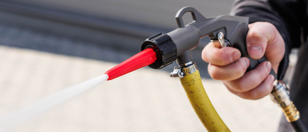 Dispozitivul utilizează aerul comprimat pentru a pulveriza fin apa sub presiune, creând un jet puternic și eficient care descompune și îndepărtează murdăria.