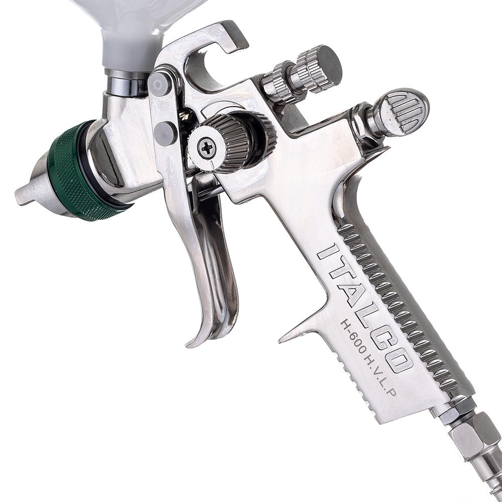 Pistolul de vopsit ITALCO HVLP H-600 este proiectat pentru aplicații profesionale de vopsire, ideal pentru lacuri pe bază de apă și vopsele metalice. Utilizează tehnologia HVLP pentru o aplicare uniformă și o reducere semnificativă a risipei de material.