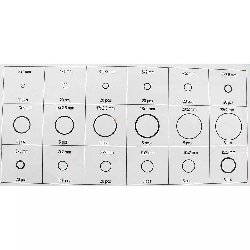 Da, setul conține 225 de piese în 18 dimensiuni diferite, asigurând o acoperire largă pentru majoritatea necesităților de etanșare, de la 3mm x 1mm la 22mm x 2mm.