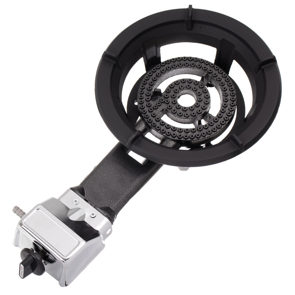 Acest arzător pe gaz din fontă, cu o putere calorică de 8,5 kW, este conceput pentru prepararea eficientă a meselor în cantități mari, în aer liber. Structura sa robustă din fontă poate susține în siguranță vase de până la 100 de litri și o greutate de aproximativ 150 kg, oferind o soluție fiabilă pentru gătitul în exterior.