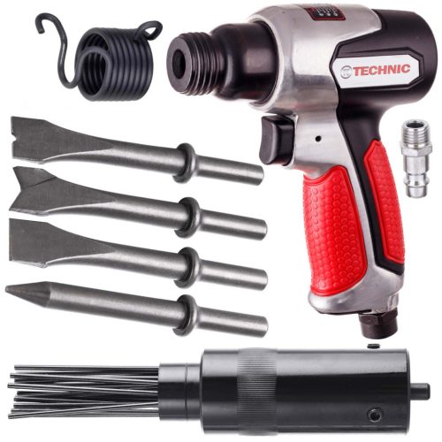 Set Ciocan Pneumatic Compact cu Ace și Dalte este o unealtă optimizată pentru ateliere auto și sarcini de întreținere industrială. Acesta oferă versatilitate extinsă în prelucrarea metalelor, garantând o manevrare ușoară chiar și în spații înguste.
