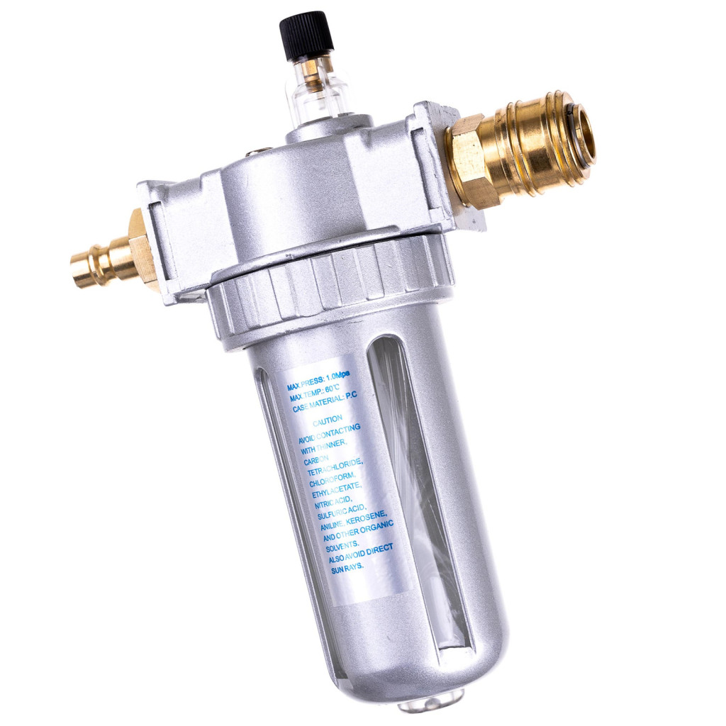Acest dispozitiv trebuie instalat pe linia de aer comprimat, între compresor și instrumentul pneumatic. Filetele standard de 1/2 inch facilitează conectarea rapidă și sigură.