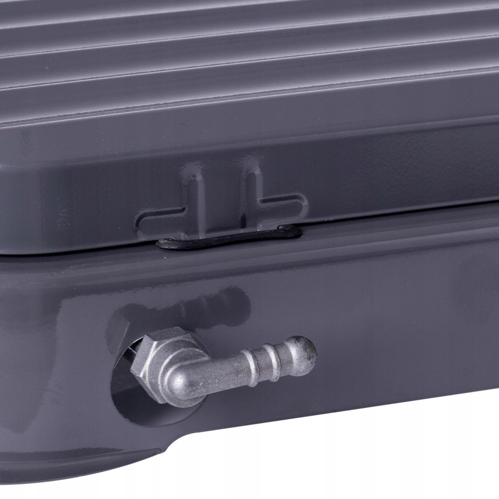 • Protecție împotriva vântului: Capacul metalic rabatabil funcționează ca paravânt, asigurând o flacără stabilă și eficiență termică optimă în aer liber.